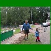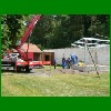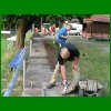 Juni - Juli 2008: Neubau der Bühne auf dem Sportplatz und Erstellung eines Plattenweges für die Zuschauer